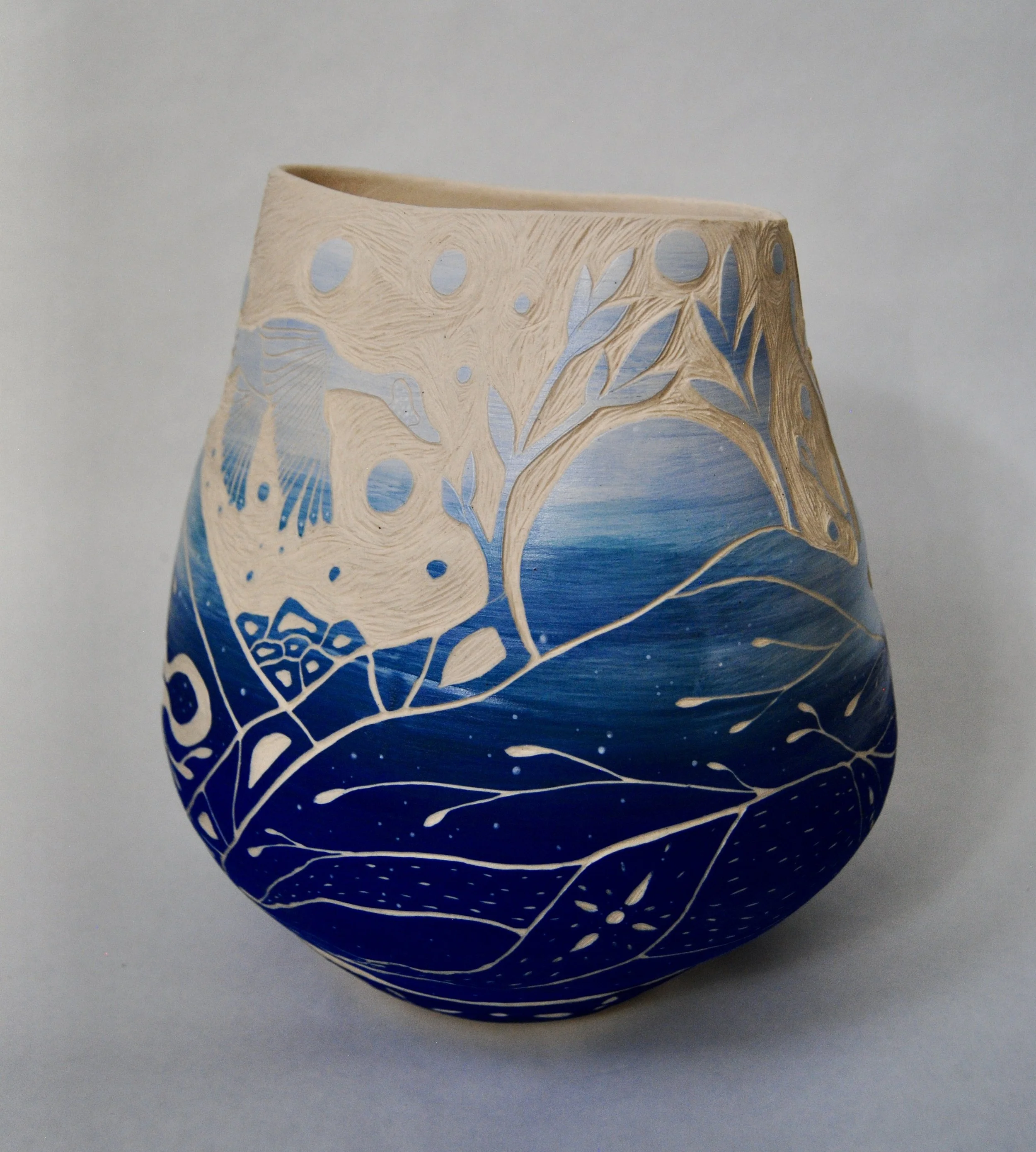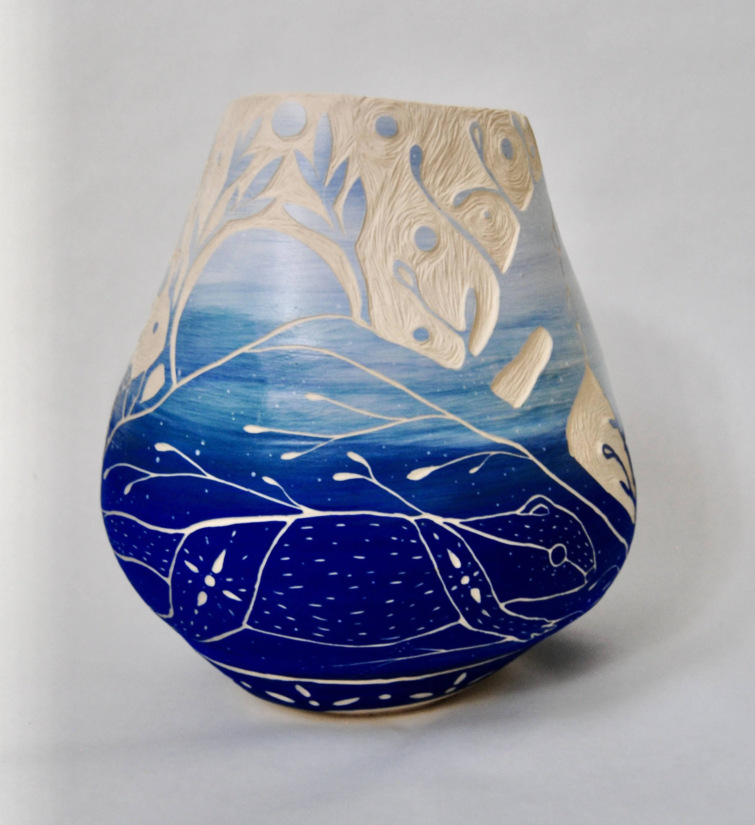 ODE TO MSHKIKI, 2022 11 x 10 x 10” (height x width x depth) Mid-smooth stone clay body, underglaze & sgraffito (cone 6)